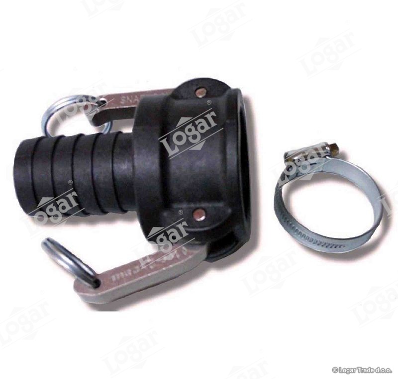 Za priklop cevi 6/4'' (fi 40 mm), vključno s cevno objemko, iz polipropilena, primerna za prehrano.
