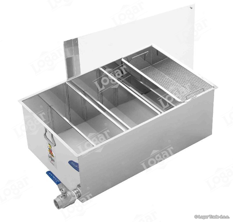 Čistilno korito s pregradami je namenjeno čiščenju medu direktno ob točenju s pretakanjem preko pregrad v koritu. Korito podstavimo pod točilo. Med iz točila najprej teče v odstranljivo korito s perforiranim dnom, kjer se med na grobo prečisti. Iz njega se pretaka preko 5-ih prekatov v zadnji prekat, iz katerega ga s črpalko črpamo preko krogličnega ventila 6/4˝v posode. Voščeni deli v medu se med pretakanjem dvigujejo, tako da je v vsaki komori med bolj čist. Čistilno korito pokrijemo s pokrovom iz akrilnega stekla.