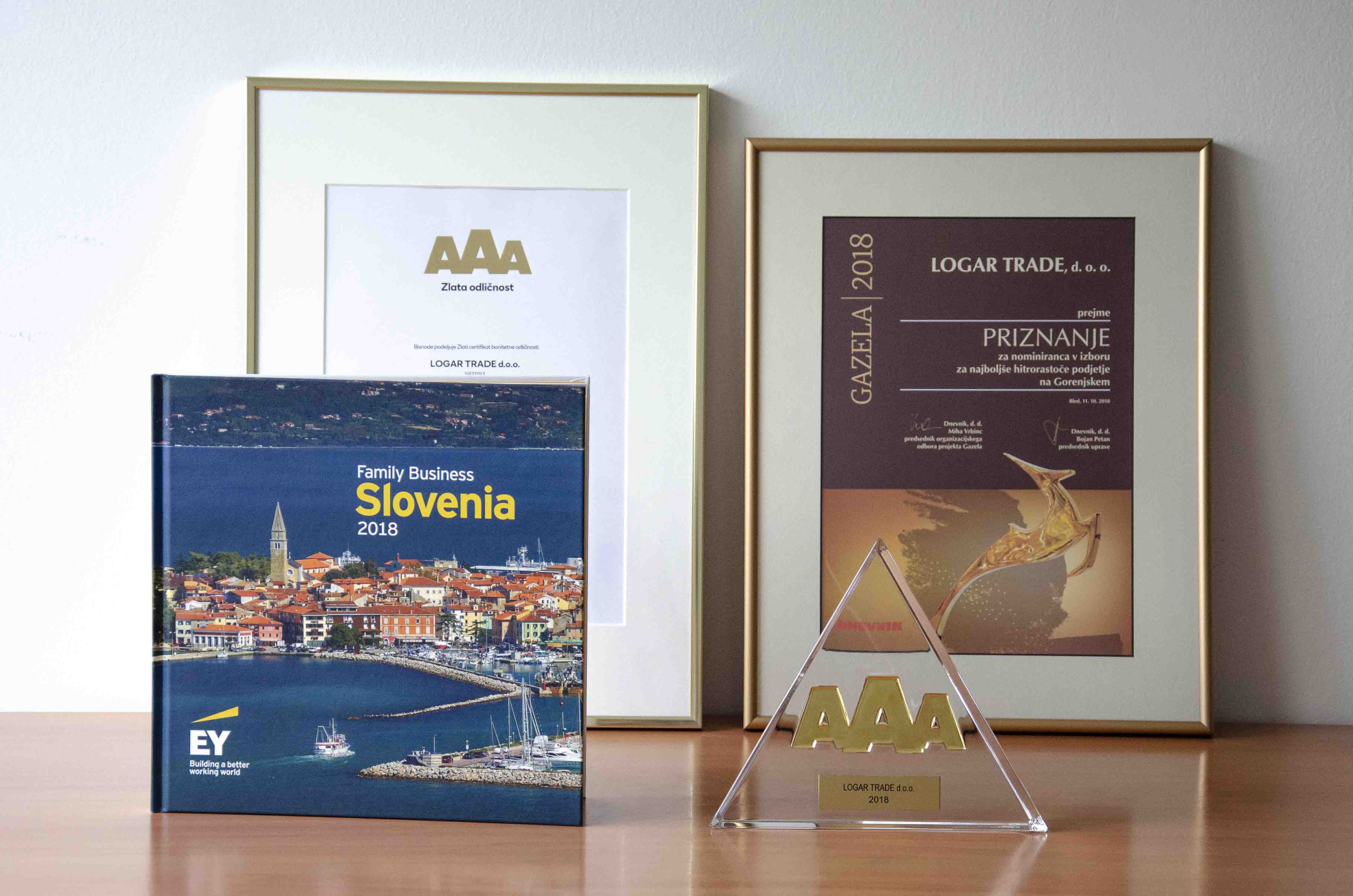 Leta 2018 je bilo podjetje nominirano za gorenjsko gazelo, ki se podeljuje najhitreje rastočim slovenskim podjetjem. Prav tako smo prejemniki Zlate bonitete odličnosti, ki jo podeljuje Bisnode. Zgodba družinskega podjetja Logar je bila predstavljena tudi v knjigi Družinsko podjetništvo 2018, kjer EY Slovenija vsako leto predstavi 10 uspešnih družinskih podjetij.
