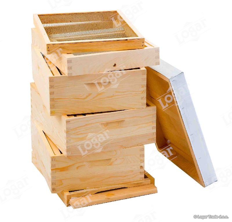 Sestava: podnica s kontrolo varoe, pitalnik, 3 naklade LR 2/3 s satniki, (okvir s prezračevalno mrežo), pokrov