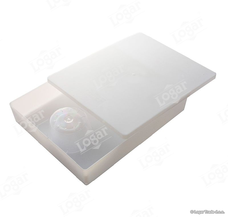 Pravokotne oblike dim. 40 x 33 x 7 cm s pokrovom, čebele pridejo do hrane od spodaj.