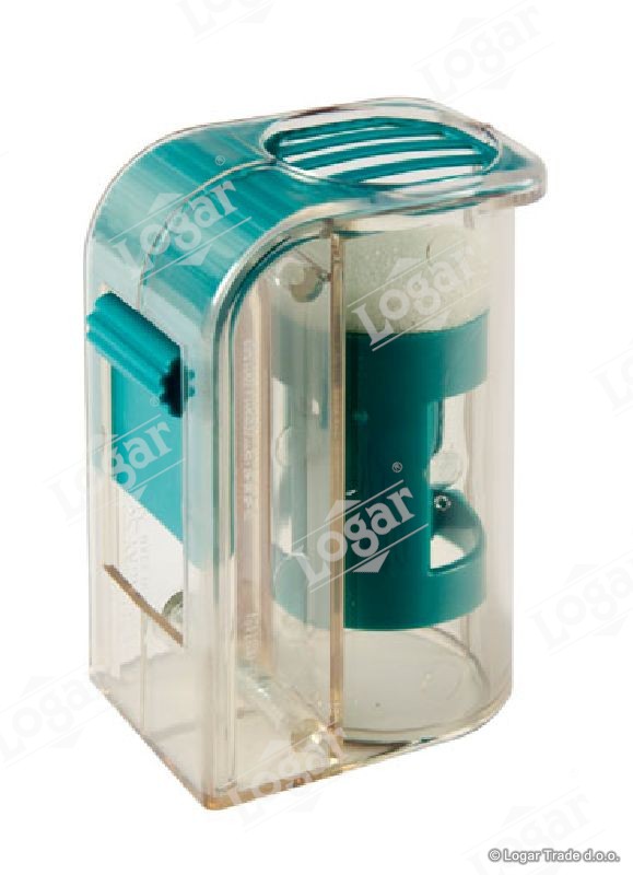 Ta pripomoček za označevanje matic vam omogoča označevanje matice z eno roko. Matico ujamemo na satu in jo fiksiramo tako, da plastični batek s peno pritisnemo ob plastično rešetko. Nato matico označimo.