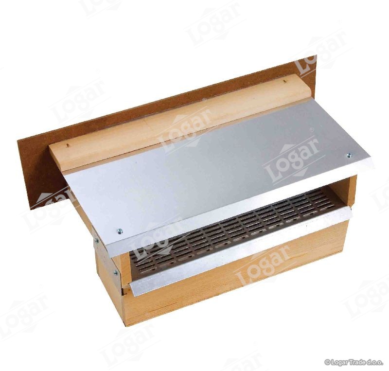 Namestimo ga na žrelo. Ko čebele vstopajo, se jim cvetni prah osmuka z nog in pade v leseno posodico. Dolžina 28 cm. Dimenzije smukalne mrežice: dolžina 25,5 cm, višina 4,5 cm.