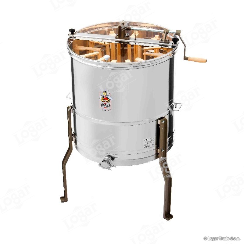 Točilo za radialno točenje 12 satnikov z ročnim enosmernim gonilom z zavoro. Najmodernejša tehnologija nam omogoča inovativno izdelavo dna točila. Dno soda je varjeno brez notranjih robov in je nagnjeno proti izpustu. Nerjaveča odtočna pipa je vgrajena na najnižjo točko, da lahko ves med odteče iz točila. Vsi deli točila, ki pridejo v stik z medom, so izdelani iz materialov, ki so primerni za prehrano. Pokrov točila je izdelan iz prosojnega akrilnega stekla. Posebna konstrukcija nog omogoča stabilno postavitev točila.