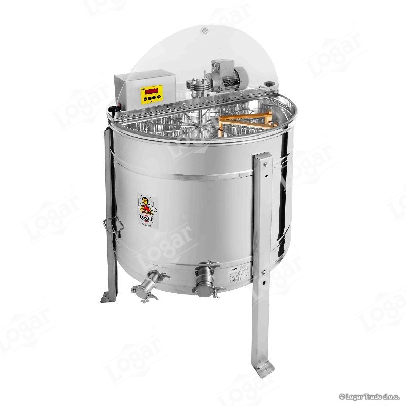 Točilo za radialno točenje 12 satnikov za med z reduktorskim motorjem 180W/230V in avtomatskim krmiljenjem ter varnostnim stikalom, ki ustavi delovanje motorja, če odpremo pokrov točila. Najmodernejša tehnologija nam omogoča inovativno izdelavo dna točila. Dno soda je varjeno brez notranjih robov in je nagnjeno proti izpustu. Točilo ima dve nerjaveči odtočni pipi 6/4'', ena je vgrajena na najnižjo točko, da lahko ves med odteče iz točila. Vsi deli točila, ki pridejo v stik z medom, so izdelani iz materialov, ki so primerni za prehrano. Pokrov točila je izdelan iz prosojnega akrilnega stekla.