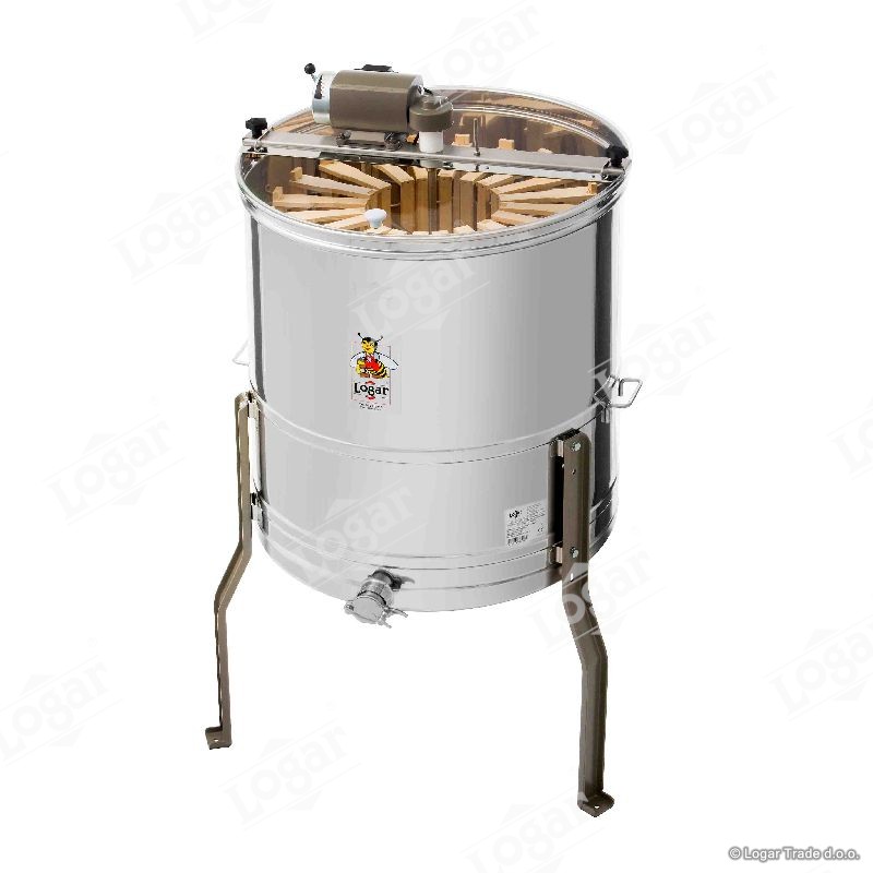 Točilo za radialno točenje 20 satnikov z reduktorskim motorjem 110W / 230V in varnostnim stikalom, ki ustavi delovanje motorja, če odpremo pokrov točila. Najmodernejša tehnologija nam omogoča inovativno izdelavo dna točila. Dno soda je varjeno brez notranjih robov in je nagnjeno proti izpustu. Nerjaveča odtočna pipa je vgrajena na najnižjo točko, da lahko ves med odteče iz točila. Vsi deli točila, ki pridejo v stik z medom, so izdelani iz materialov, ki so primerni za prehrano. Pokrov točila je izdelan iz prosojnega akrilnega stekla. Posebna konstrukcija nog omogoča stabilno postavitev točila.