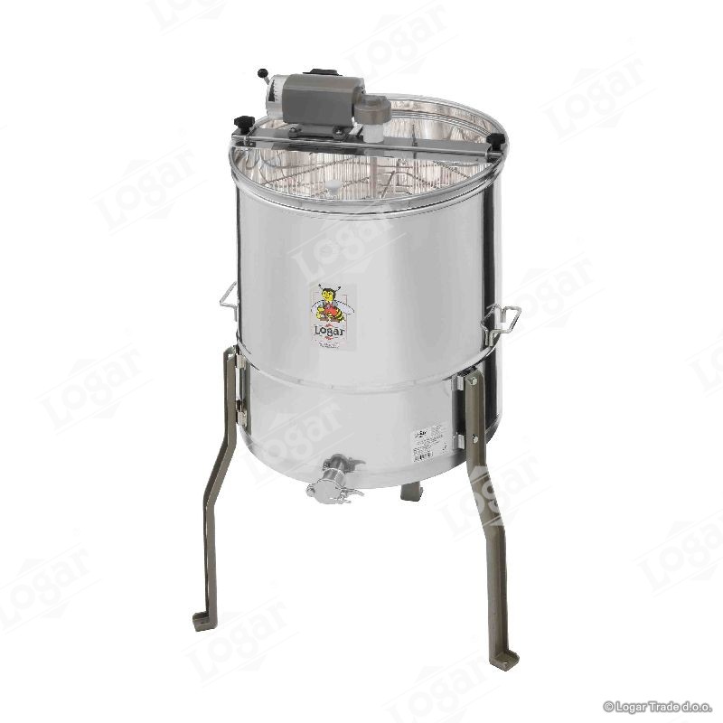 Točilo za med na 4 sate z reduktorskim motorjem 110W / 230V in varnostnim stikalom, ki ustavi delovanje motorja, če odpremo pokrov točila. Najmodernejša tehnologija nam omogoča inovativno izdelavo dna točila. Dno soda je varjeno brez notranjih robov in je nagnjeno proti izpustu. Privarjena nerjaveča odtočna pipa je vgrajena na najnižjo točko. Čiščenje točila je enostavno. Vsi deli točila, ki pridejo v stik z medom, so izdelani iz materialov, ki so primerni za prehrano. Pokrov točila je izdelan iz prosojnega akrilnega stekla. Posebna konstrukcija nog omogoča stabilno postavitev točila.