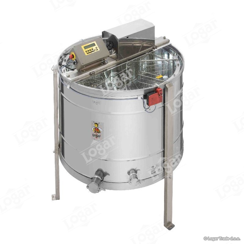 Samoobračalno kasetno točilo za med na 6 satov z reduktorskim motorjem 370W/230V in avtomatskim krmiljenjem. Vgrajeno ima varnostno ključavnico, ki ustavi delovanje motorja, če odpremo pokrov točila med delovanjem. Najmodernejša tehnologija nam omogoča inovativno izdelavo dna točila. Dno soda je varjeno brez notranjih robov in je nagnjeno proti izpustu. Točilo ima dve nerjaveči odtočni pipi (6/4'' in 2''). Odtočna pipa 2'' je vgrajena na najnižjo točko, da lahko ves med odteče iz točila. Točilo je v celoti izdelano iz nerjavečih materialov primernih za prehrano. Pokrov točila je izdelan iz prosojnega akrilnega stekla.