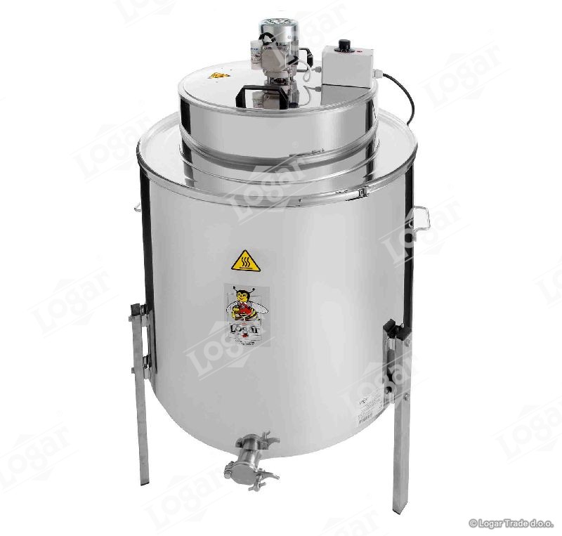 Topilec pokrovčkov omogoča enostavno ločevanje medu iz voščenih pokrovčkov na osnovi kroženja toplega zraka v posodi. V pokrov posode je vgrajen grelec moči 2,5 kW/230V z nastavljivim termostatom temperature (30°-90°). Ventilator s kroženjem zraka zagotavlja enakomerno porazdelitev toplote po celotni posodi. Voščeni pokrovčki se začnejo topiti, med steče na dno posode, stopljeni vosek prekrije med in ga zaščiti pred pregrevanjem. Investicija v ta topilec se vam zelo hitro povrne, ker z njim dobite nazaj ves med iz voščenih pokrovčkov.