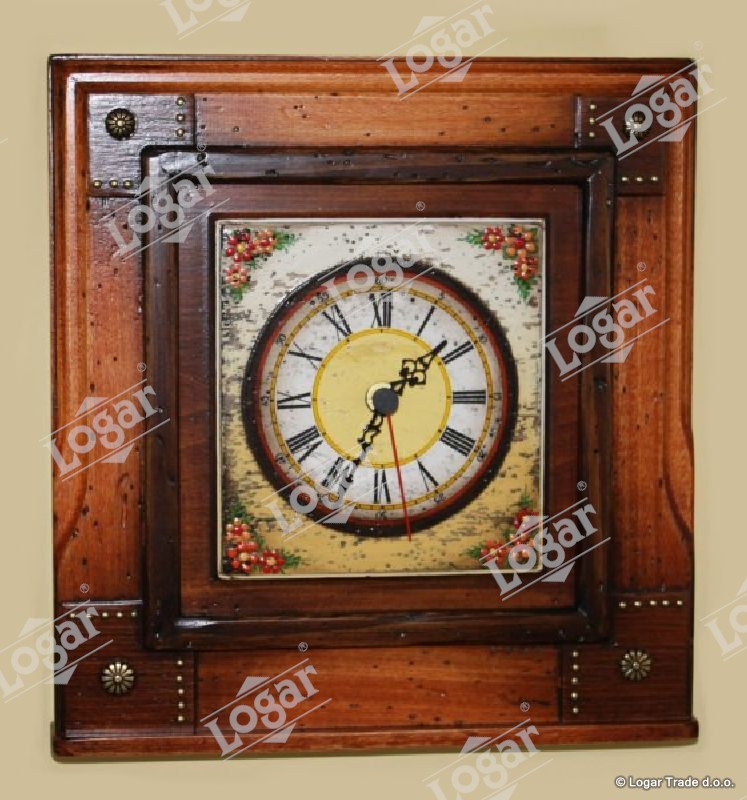 Stenska ura s starinskim izgledom. Izdelana iz lipovega lesa. Dimenzija ure: 26 x 28 cm